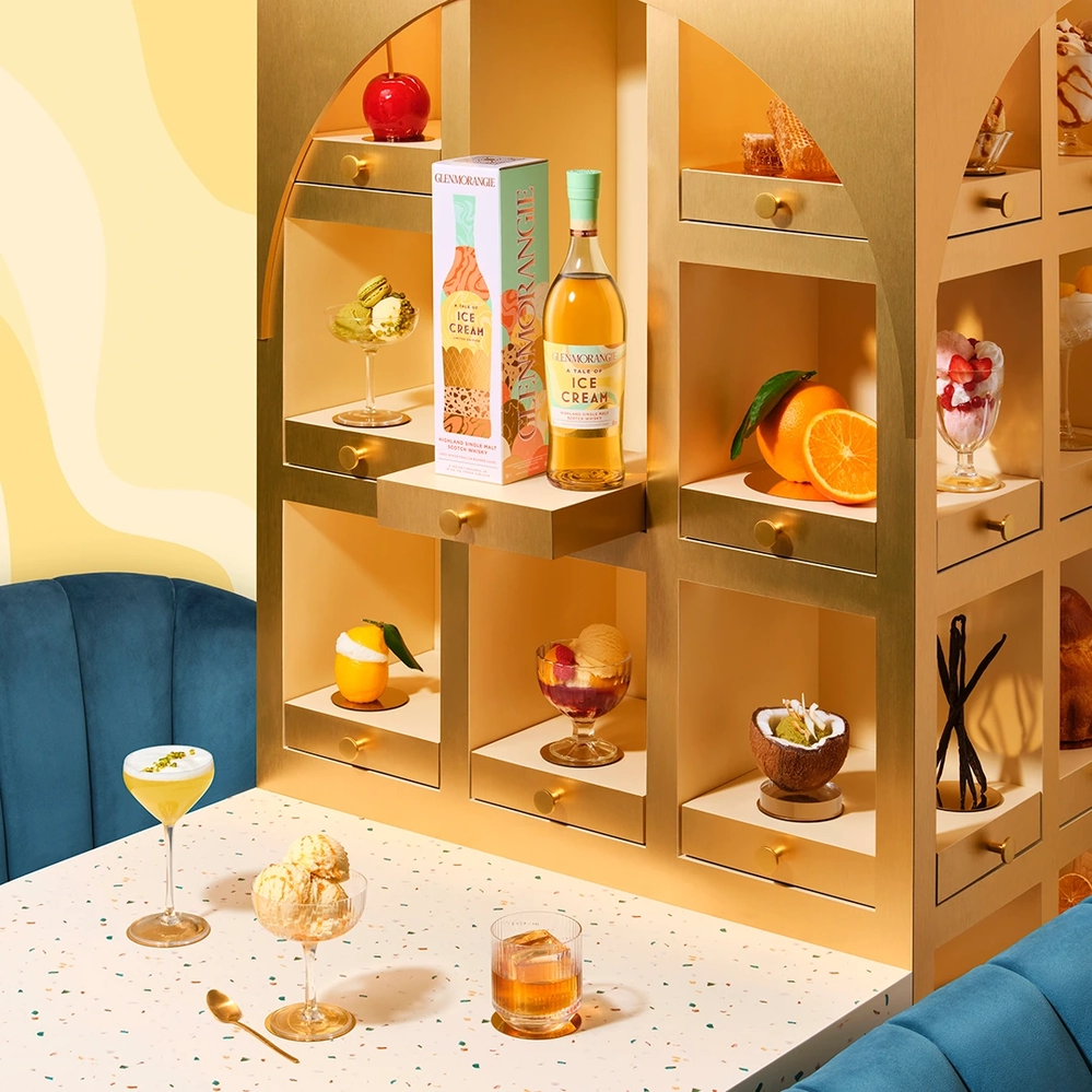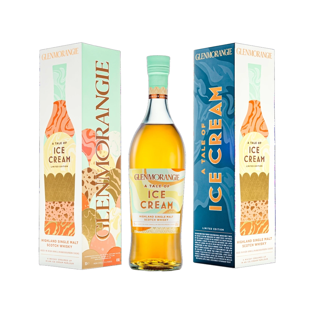 Glenmorangie A Tale of Ice Cream is a playful, dessert-inspired single malt that captures the joyful indulgence of summer flavors. Aged in bourbon and dessert wine casks, it unfolds with creamy vanilla, caramel, and tropical fruit tones reminiscent of artisan gelato. The texture is luxuriously smooth, echoing the brand’s signature elegance with a whimsical twist.